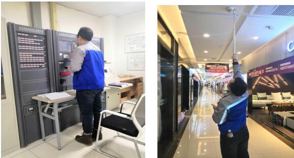 2019年3月27日,甘肅安卓工程技術(shù)有限公司消防事業(yè)部技術(shù)人員達選飛、任有輝前往蘭州市城關(guān)區(qū)雁北路對蘭州居然燈飾城的消防設(shè)施進行維護保養(yǎng)工作。
